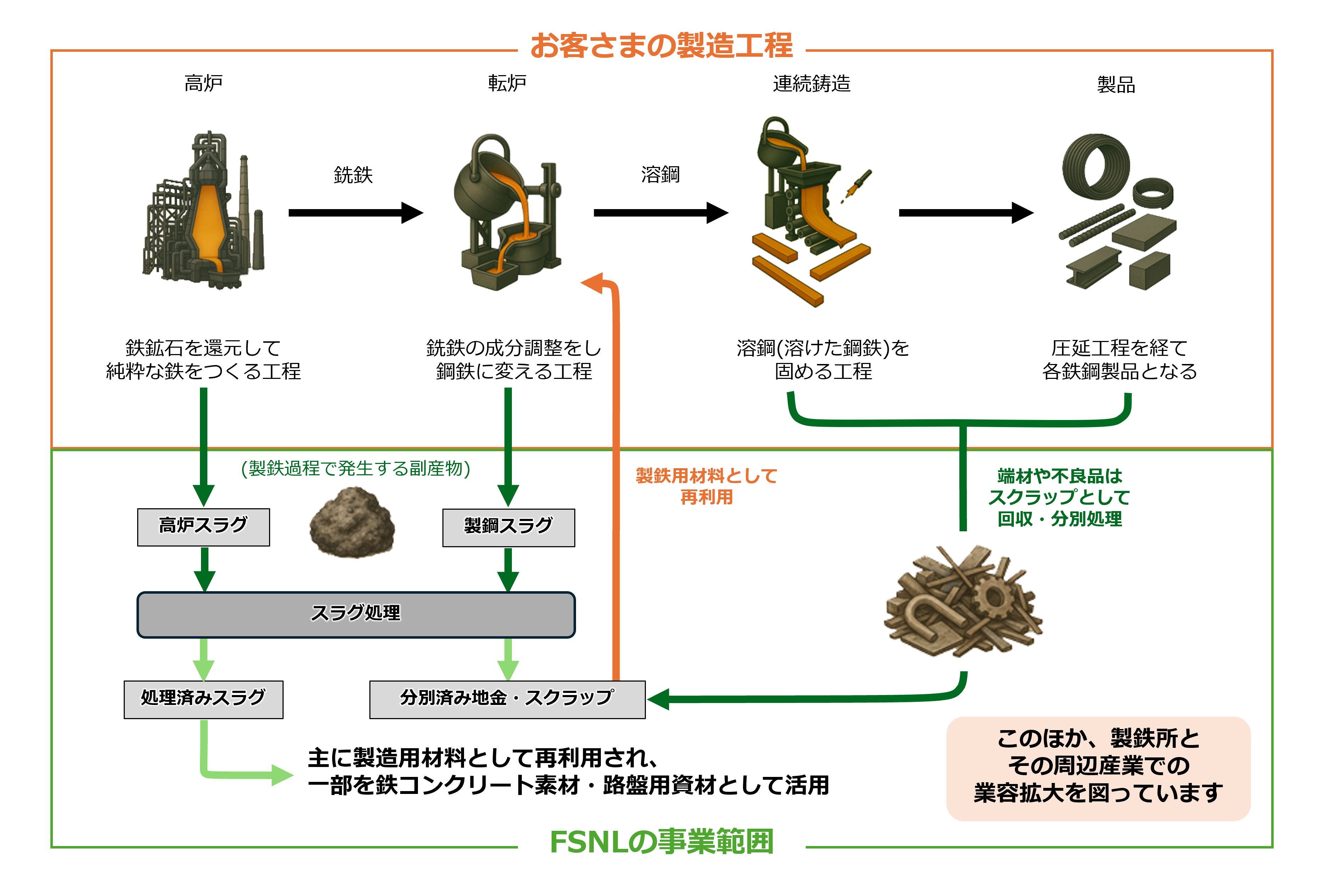 鉄鋼製造工程とFSNLの業務範囲